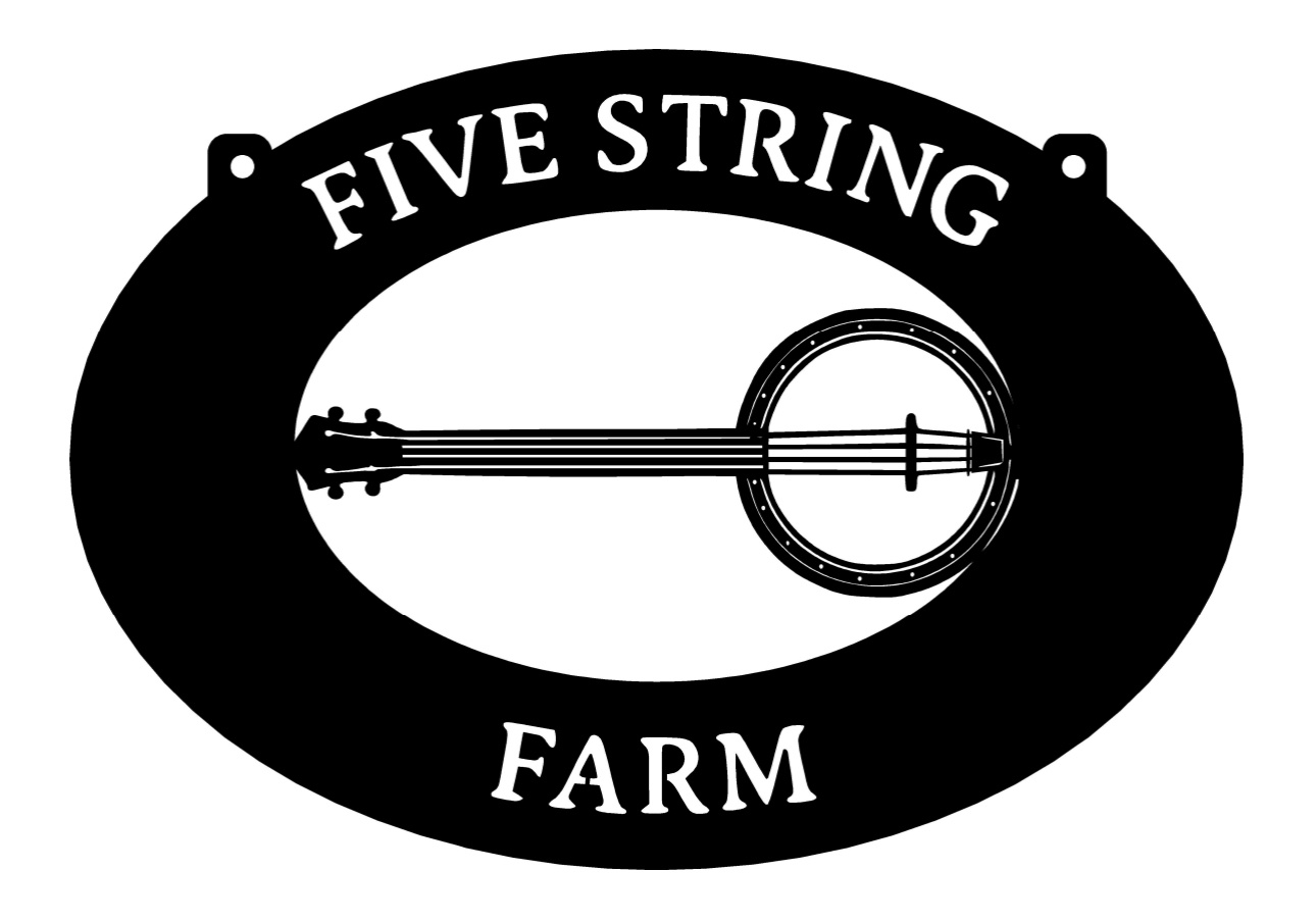 Five String Farm sign in black