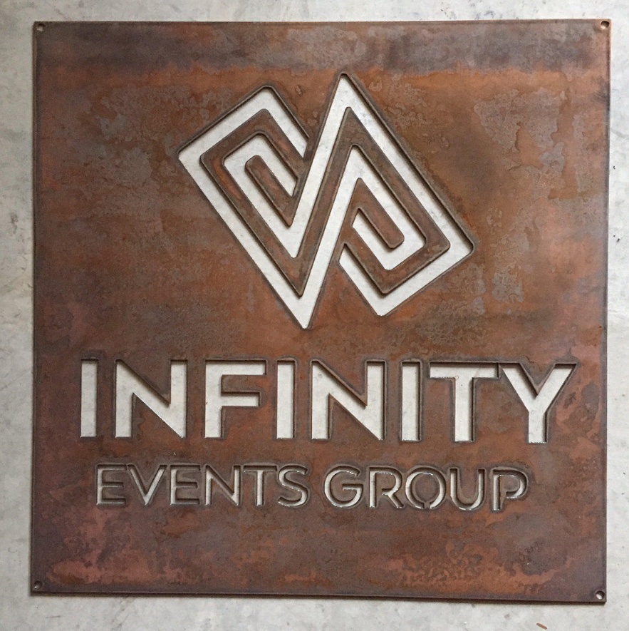 36″ metal sign in copper patina with your own logo uploaded
