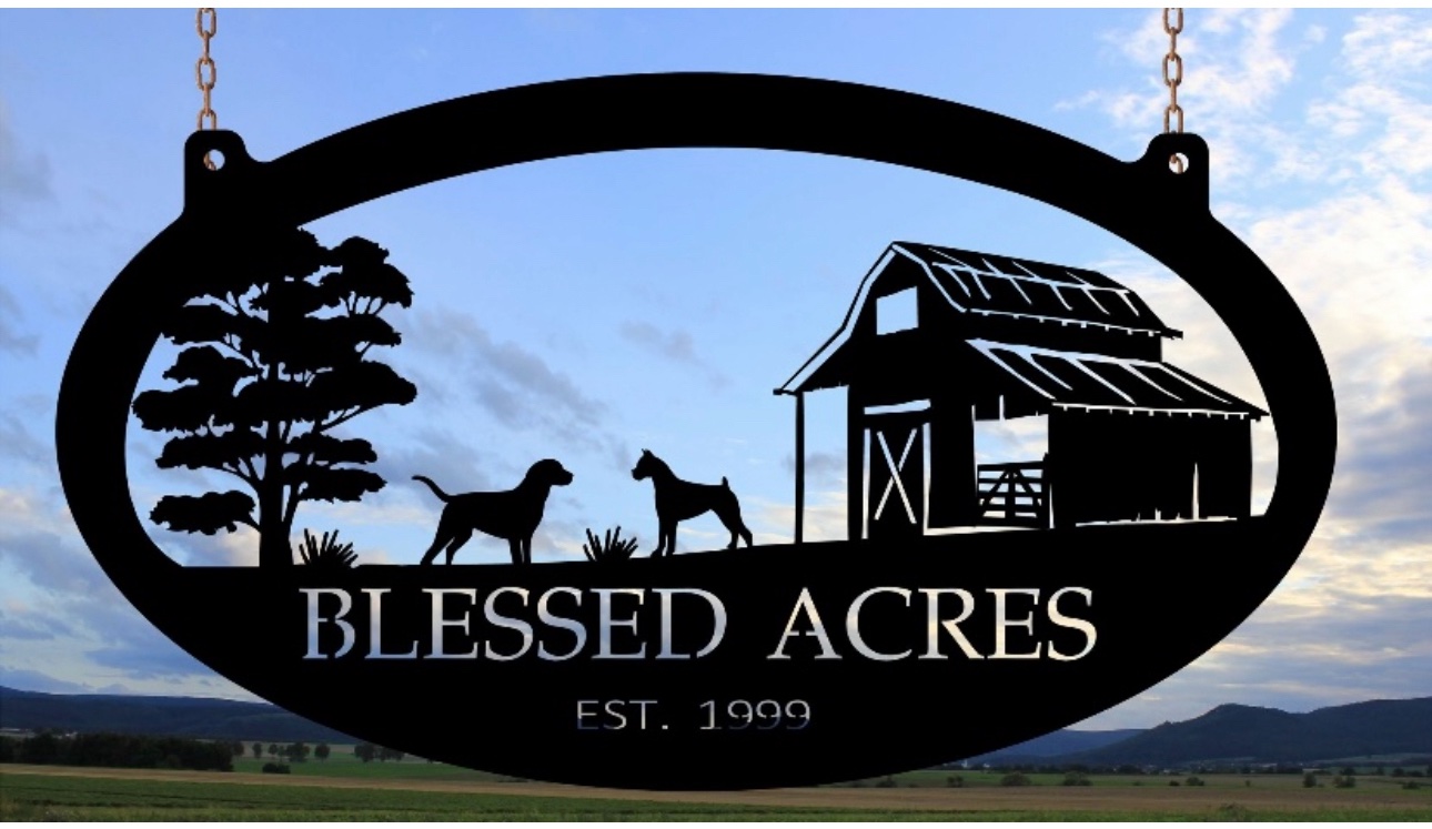 Rustic, personalized metal sign with farmyard scene. Measures 3 ft x 20″. Powder coated black or beautiful copper acid and clear coated. LEAVE NOTE TO SELLER WITH NAME AND OR EST. DATE YOU WANT ON SIGN, PROOF PROVIDED