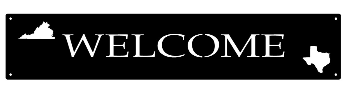 Welcome sign with Tx and Virginia in black